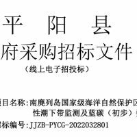 南麂列島國家級海洋自然保護區(qū)生物多樣性潮下帶監(jiān)測及藍碳(初步)數(shù)字平臺的公開招標